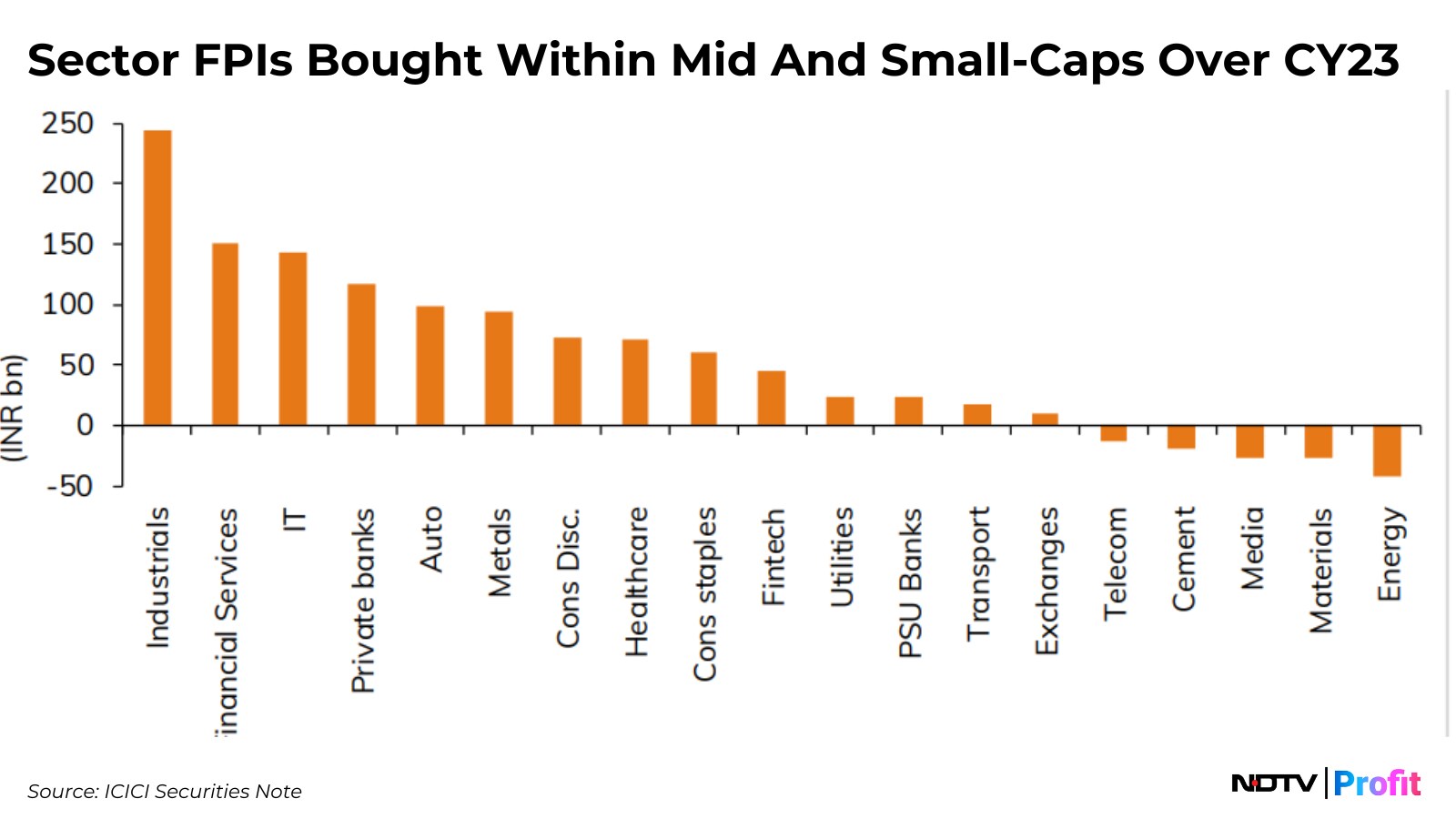 Sectorally, FPI's major implicit inflows within mid and small caps have been in financials (Rs 29,100 crore), industrials (Rs 24,400 crore), information & technology (Rs 14,400 crore), auto (Rs 9,900 crore), while FPI's major implicit outflows were in energy (Rs 4,300 crore), materials (Rs 2,700 crore, media (Rs 2,700 crore), ICICI Securities said.