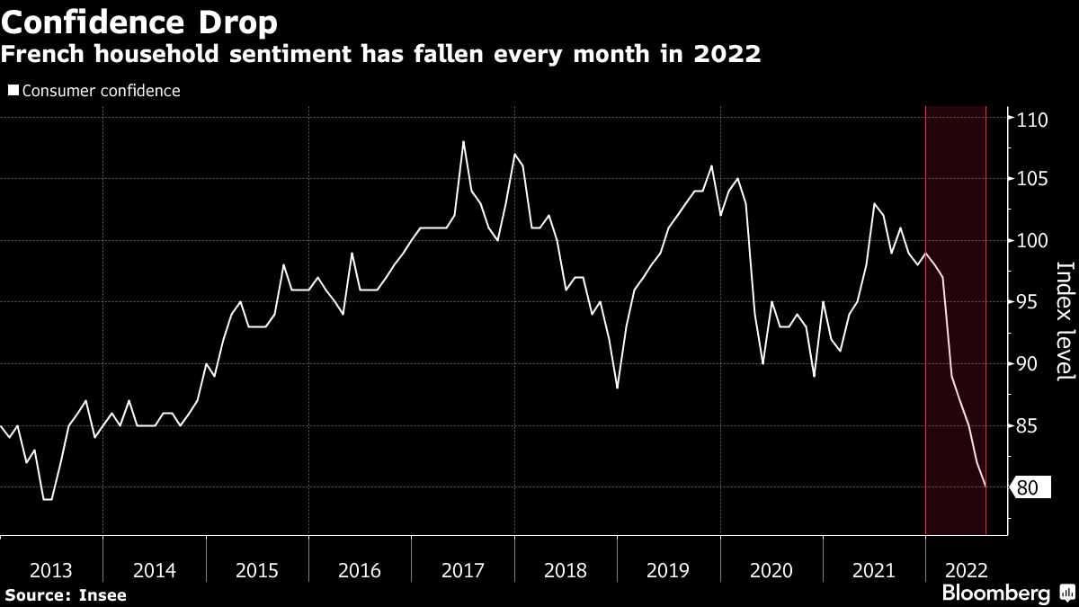 Even so, the outlook has soured markedly in recent weeks, despite a strong labor market and government aid to cushion soaring inflation. Activity and confidence surveys suggest output may already be shrinking as the war in Ukraine raises uncertainty over Russian energy supplies.