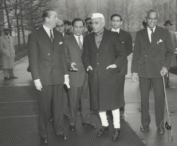 Health Minister Amrit Kaur, Governor General C Rajagopalachari, Prime Minister Jawaharlal Nehru, and Madame Aung San, at Government House, New Delhi on Sept. 27, 1949. (Photograph: Photo Division, Govt. of India)