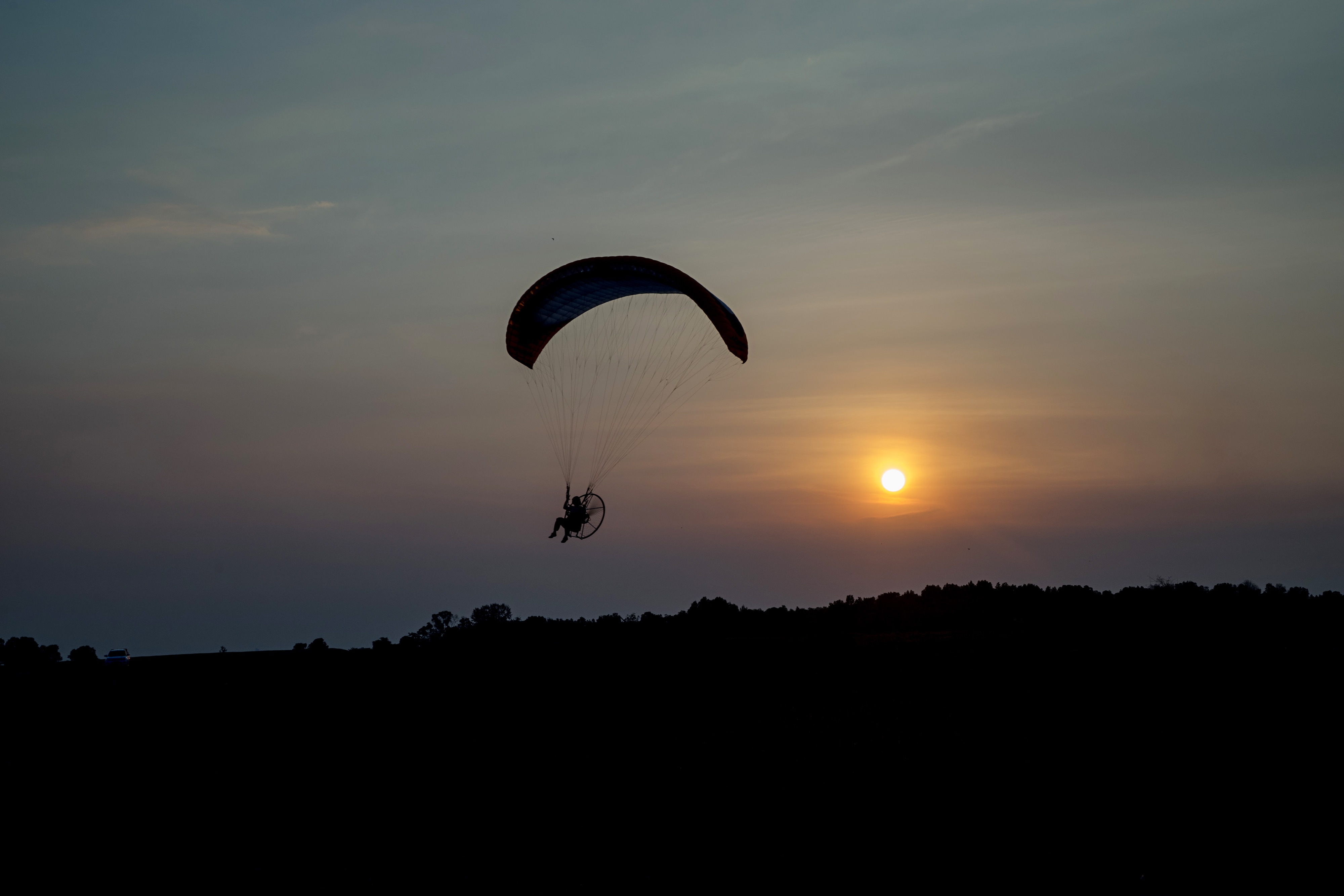 A paramotor enthusiast is silhouetted as he flies in this aerial photograph taken over Malaysia. (Photographer: Sanjit Das/Bloomberg )
