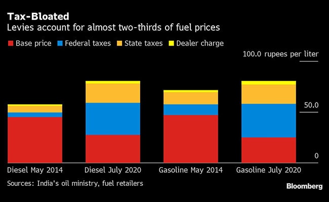 The central government raised levies on diesel and petrol in March and then again in early May as the coronavirus battered the economy. There's been a staggering fivefold increase in taxes on diesel since 2014 when Prime Minister Narendra Modi came to power, while those on petrol have more than doubled. State governments also impose fuel levies, which in Delhi account for around a quarter of the retail prices.