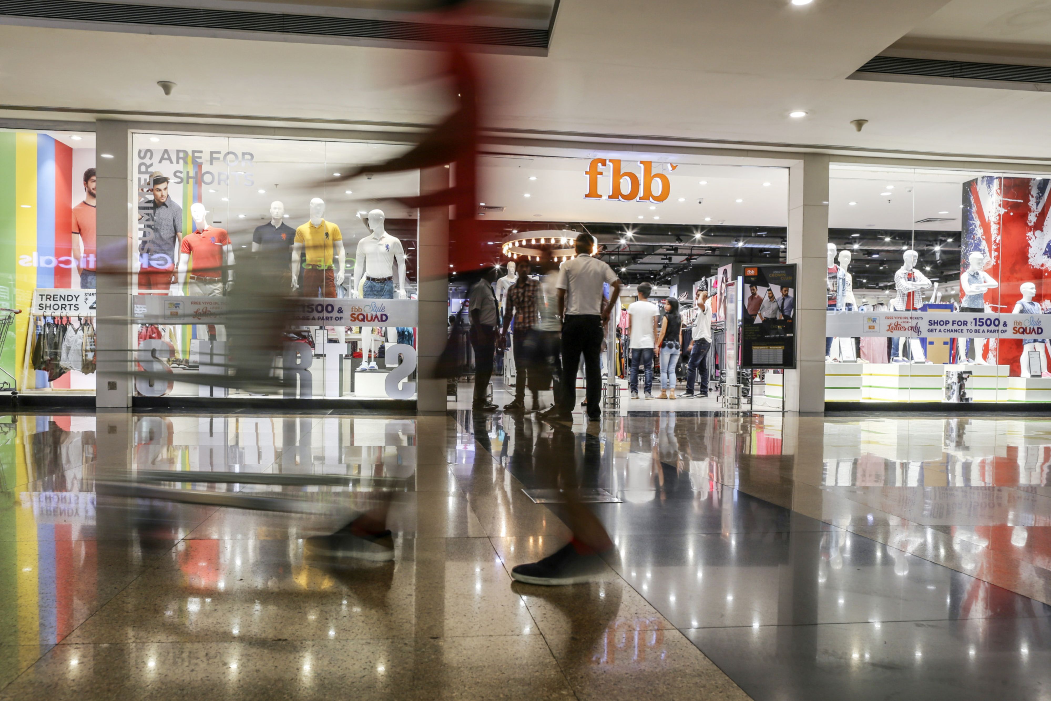 Signage for Fashion @ Big Bazaar, the fashion unit of Big Bazaar operated by Future Retail Ltd., stands at a Big Bazaar hypermarket in Mumbai. (Photographer: Dhiraj Singh/Bloomberg)