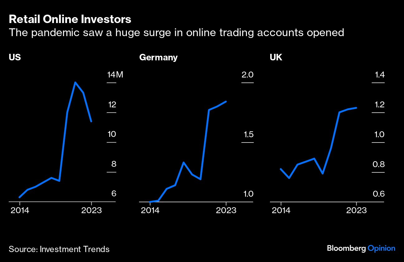 While I must confess at times to covering my face in horror, some of this is good news as a new generation invests with an eye to its future rather than just splurging on consuming. A 2022 Bayes Business School study highlighted that turning long-term investing into a game has beneficial effects, with video game techniques potentially teaching healthy financial habits. My Bloomberg Opinion colleague Merryn Somerset Webb has pointed out that maybe traditional asset managers might learn a thing or three from Gen-T.