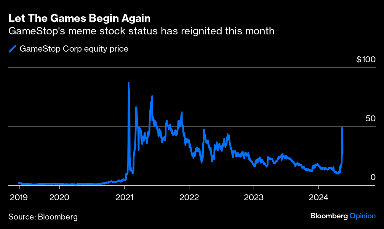 (Bloomberg Opinion) -- After a long period of calm, all it took to reignite the meme stock flames was a cryptic post last week from “Roaring Kitty” showing a character leaning forward in a chair. That's the moniker used by Keith Gill, who shot to fame in 2021 as he rallied traders on the social media site Reddit around GameStop Corp. He's the poster child for Generation-T, a new cohort of younger traders with a markedly different approach to investing than their elders.