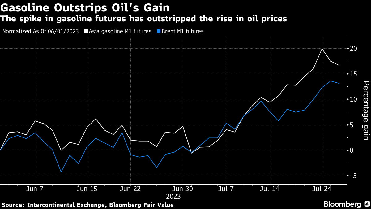 In Europe, gasoline usage has been rebounding too, with France, Germany, Spain and Italy all posting year-on-year increases in consumption. At the same time, the region is still feeling the supply pinch from sanctions on Russia that deprived local refiners of crude and other raw materials for gasoline.