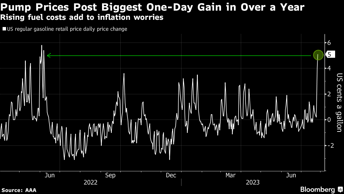 (Bloomberg) -- The price of gasoline is starting to surge everywhere, an inflationary omen for central banks and governments the world over.