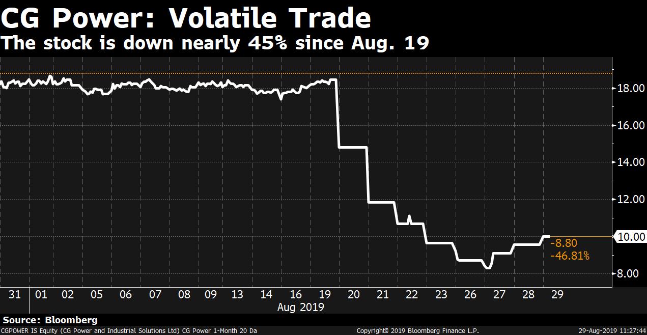 Shares of CG Power have declined nearly 45 percent since Aug.19 compared with a 1.1 percent drop in the benchmark Nifty 50 Index. The stock has hit the upper circuit over the last three sessions. Shares of Yes Bank also took a beating since the lapses in CG Power's financials came to light. Its stock tumbled 27.9 percent since Aug. 19.