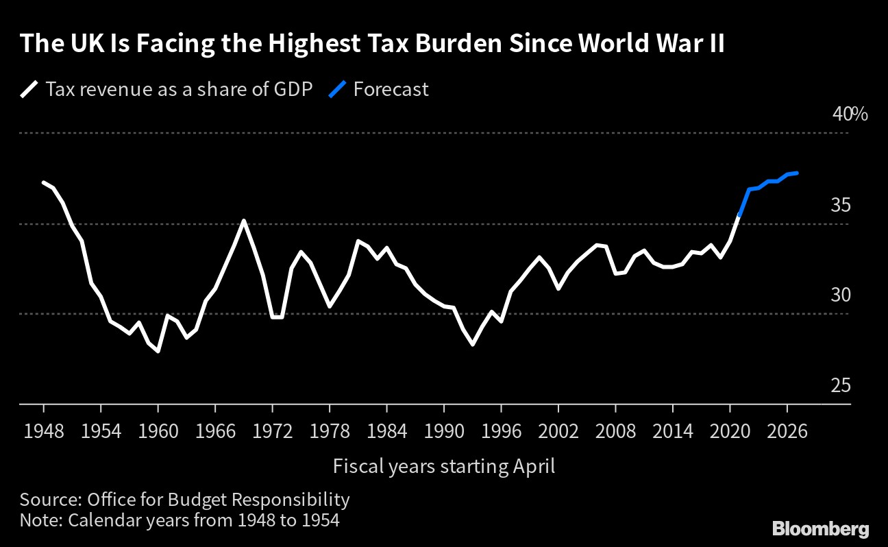 That has forced Hunt and predecessors to boost other taxes when stabilizing the public finances with the Treasury's overall tax take from the economy heading to the highest level in the post-war era.