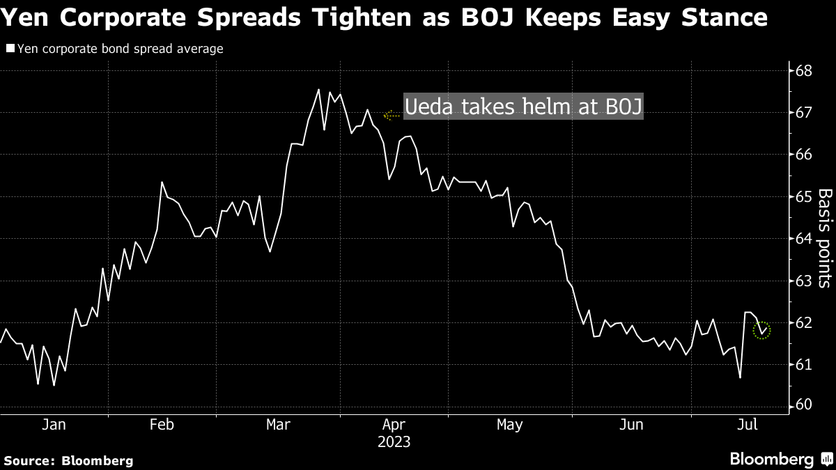 That's all helping burnish the asset class at a time when rates markets are signaling expectations that the Bank of Japan may need to tweak policy as inflation remains above its target, even as Governor Kazuo Ueda has repeatedly made the case for maintaining monetary stimulus. Still, BOJ officials see little urgent need to act on the effects of yield curve control for now, people familiar with the matter said last week.ย