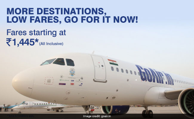 GoAir airline is offering domestic flight tickets at a starting all-inclusive price of Rs 1,445 on select routes under its 'More Destinations, Low Fares' scheme. GoAir's new promotional offer is valid till September 30, 2018, according to the airline's website-goair.in. Customers can avail an extra 10 per cent discount on bookings via GoAir app by using the code GOAPP10. "Enjoy the lowest fares with GoAir! Fly Smart with our fares starting as low as Rs 1,445", said the carrier on its website. (Also read: IndiGo Announces New Flights, Fares Start From Rs 2,999)