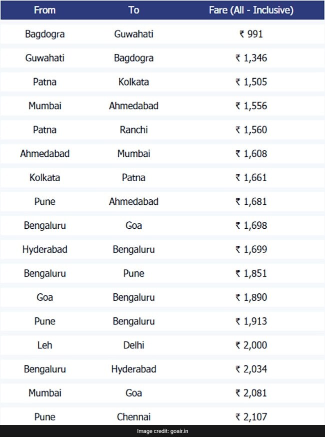 GoAir Offers Flight Tickets Under Rs 1000 On Select Domestic Routes