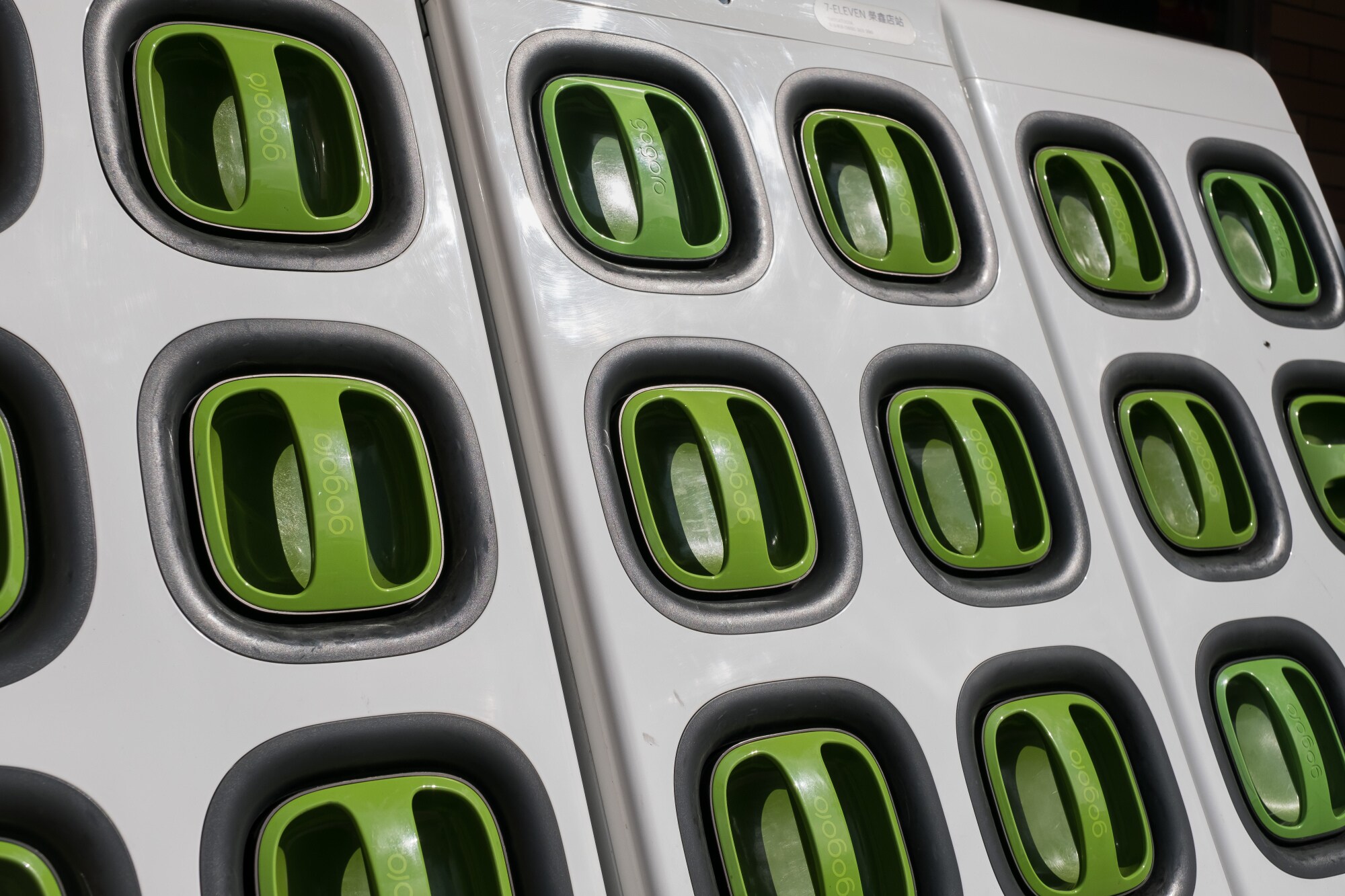 The battery stations Gogoro currently operates in Taiwan are up to six feet tall and can charge as many as 30 batteries at a time. They are typically installed in high-traffic, easily accessible locations such as gas stations and metro stations.