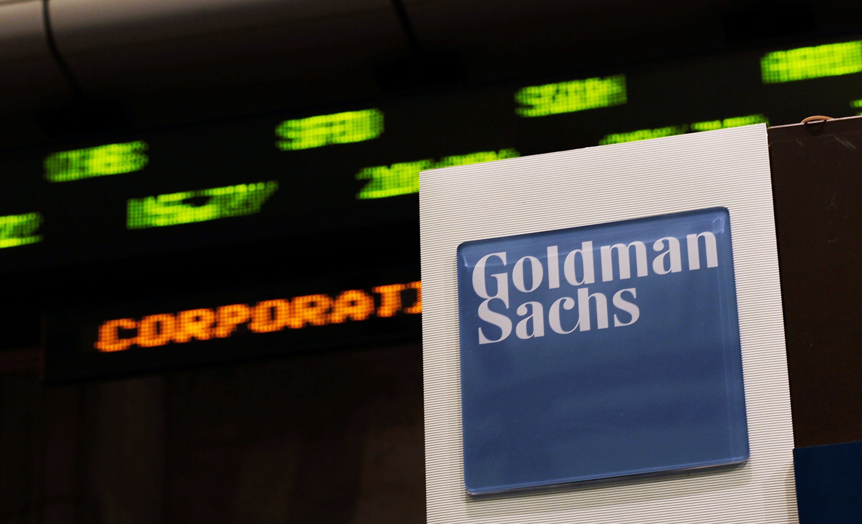 NEW YORK - APRIL 16: Stock prices whiz by on a ticker near the Goldman Sachs booth on the floor of the New York Stock Exchange April 16, 2010 in New York, New York. Goldman Sachs was charged with fraud by the Securities and Exchange Commission over its marketing of a subprime mortgage product, sending its stock price sharply lower. (Photo by Chris Hondros/Getty Images)