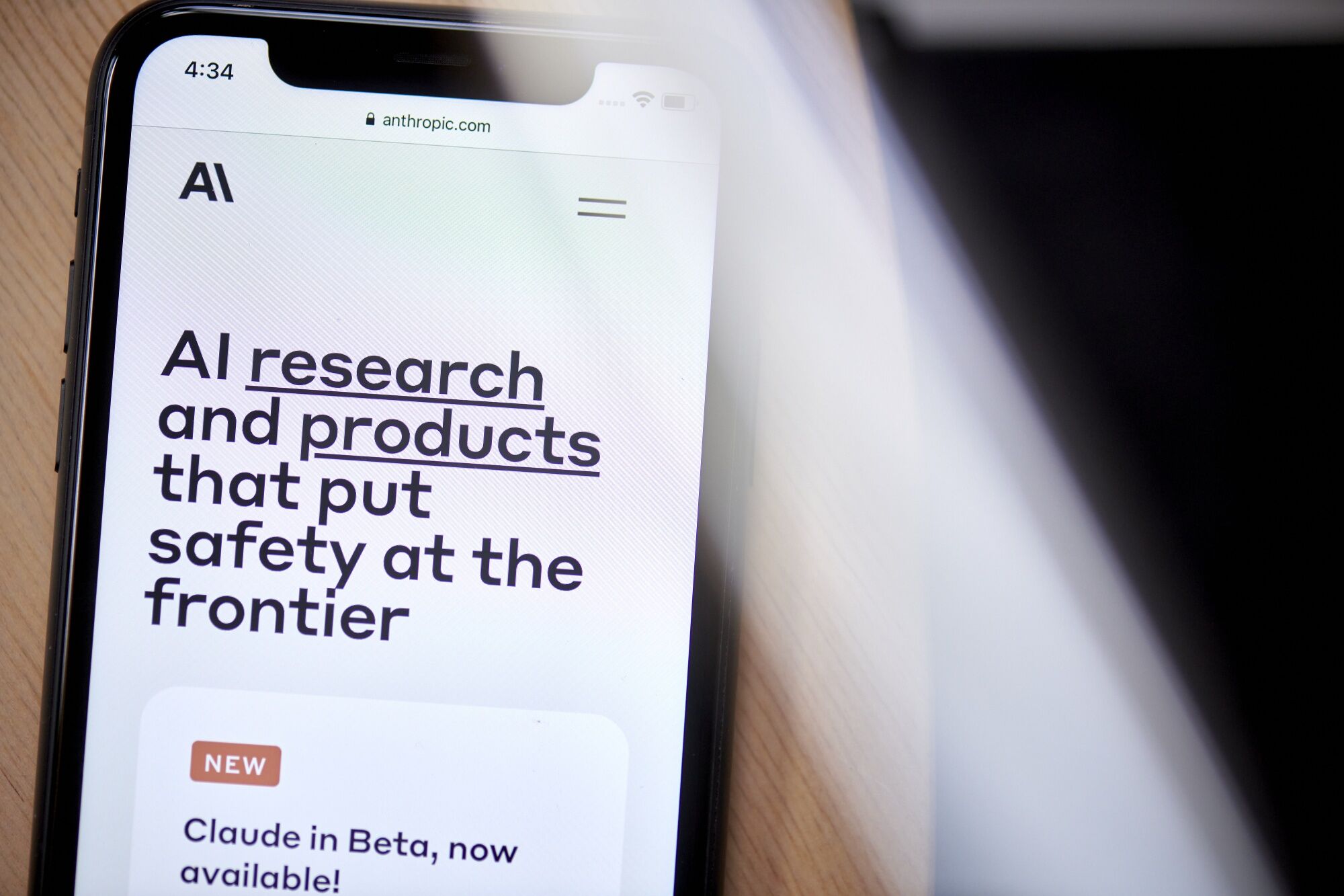 The Anthropic website on a smartphone arranged in New York, US, on Tuesday, Aug. 15, 2023. Investor enthusiasm for AI-related startups has increased significantly in the past year, as more of the technology has come to market, showcasing its potential.