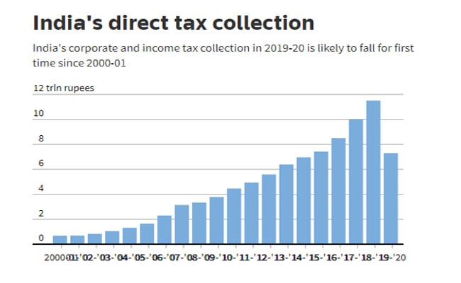 But eight senior tax officials interviewed by Reuters said despite their best efforts direct tax collections this financial year were likely to fall below the Rs 11.5 lakh crore collected in 2018-19.