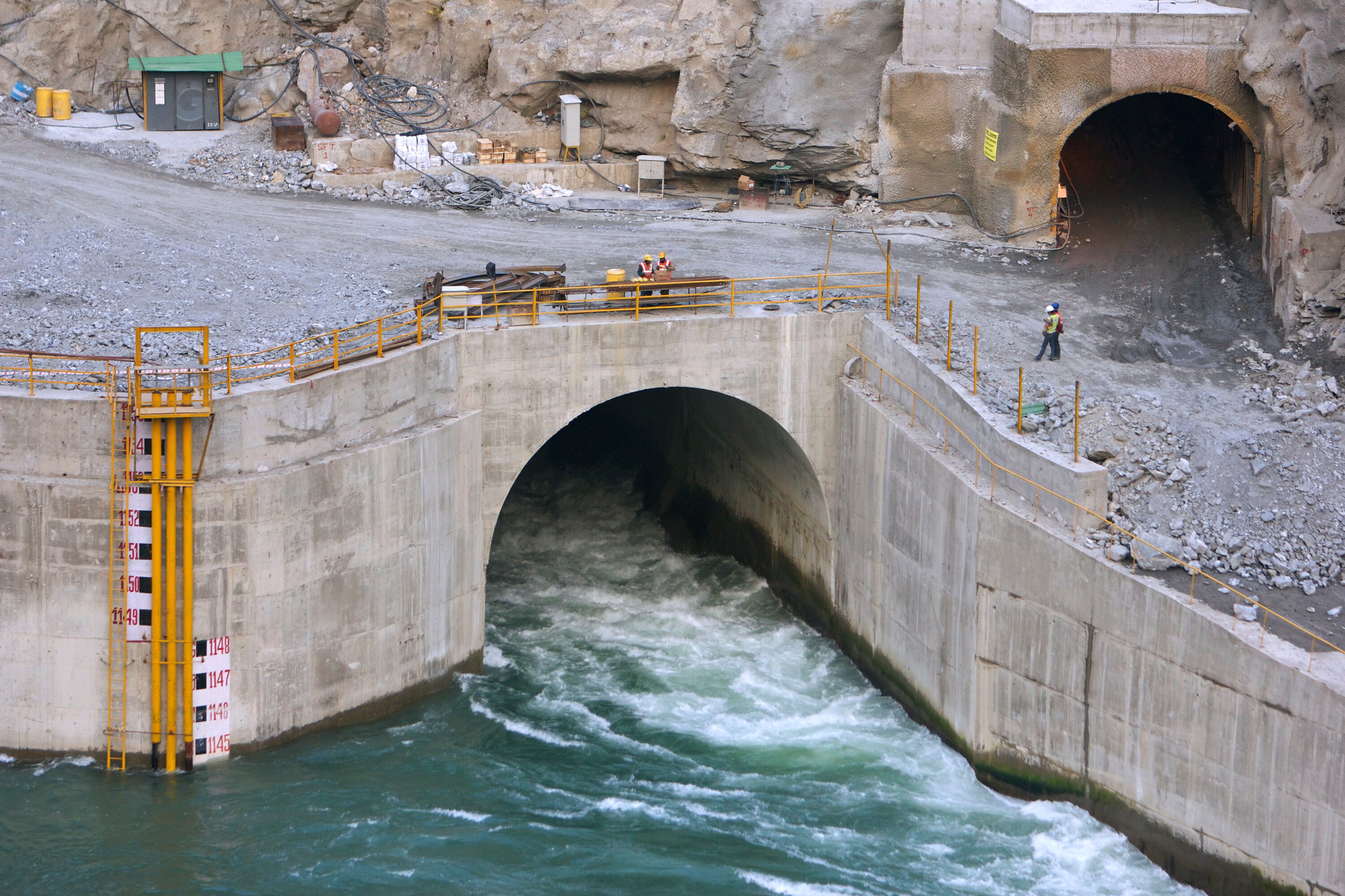 Water flows through a tunnel at the site of the Punatsangchhu hydro-electric power project in Wangdue, Bhutan. (Photographer: Adeel Halim/Bloomberg)