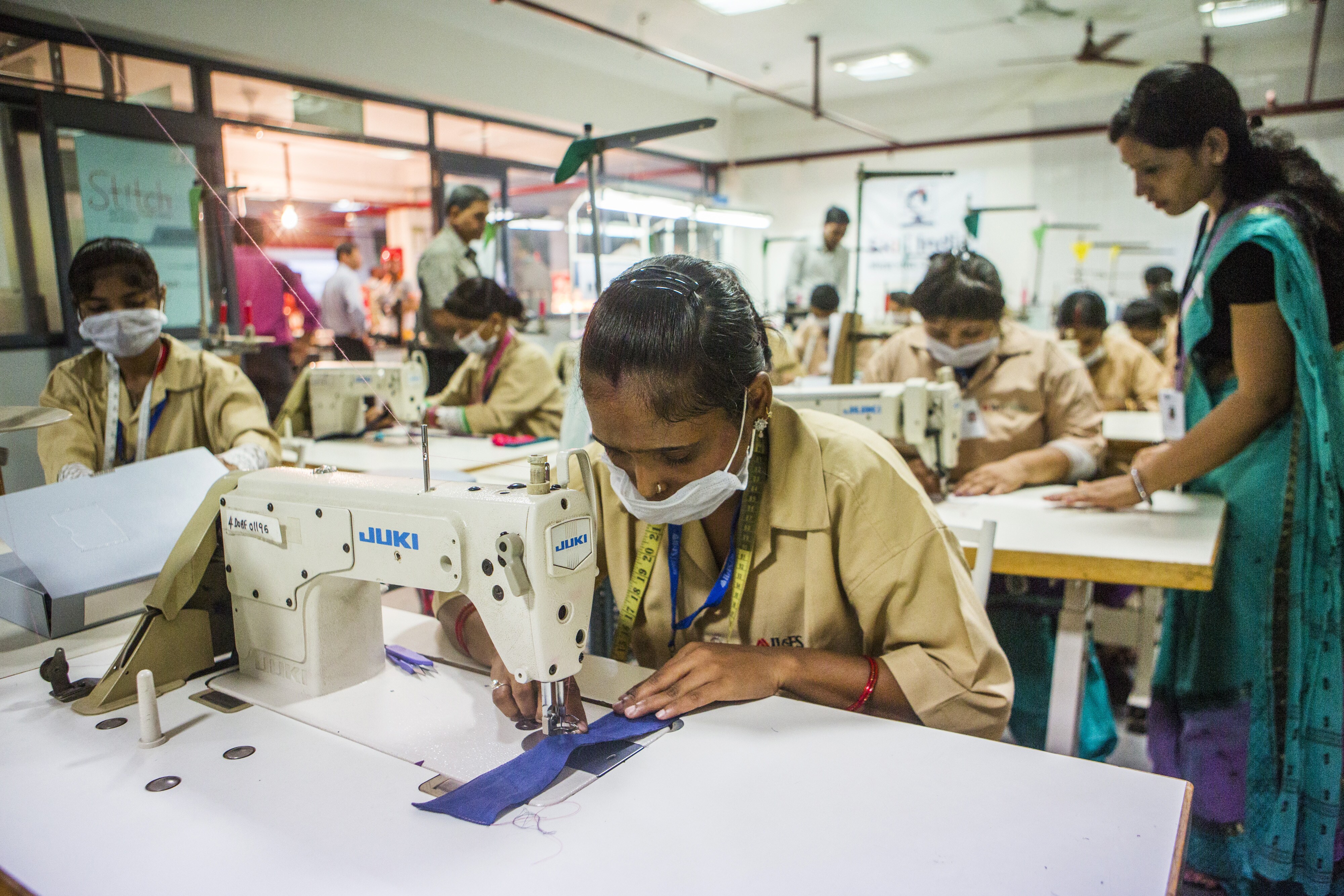 Students attend a sewing class during vocational training. (Photographer: Prashanth Vishwanathan/Bloomberg)