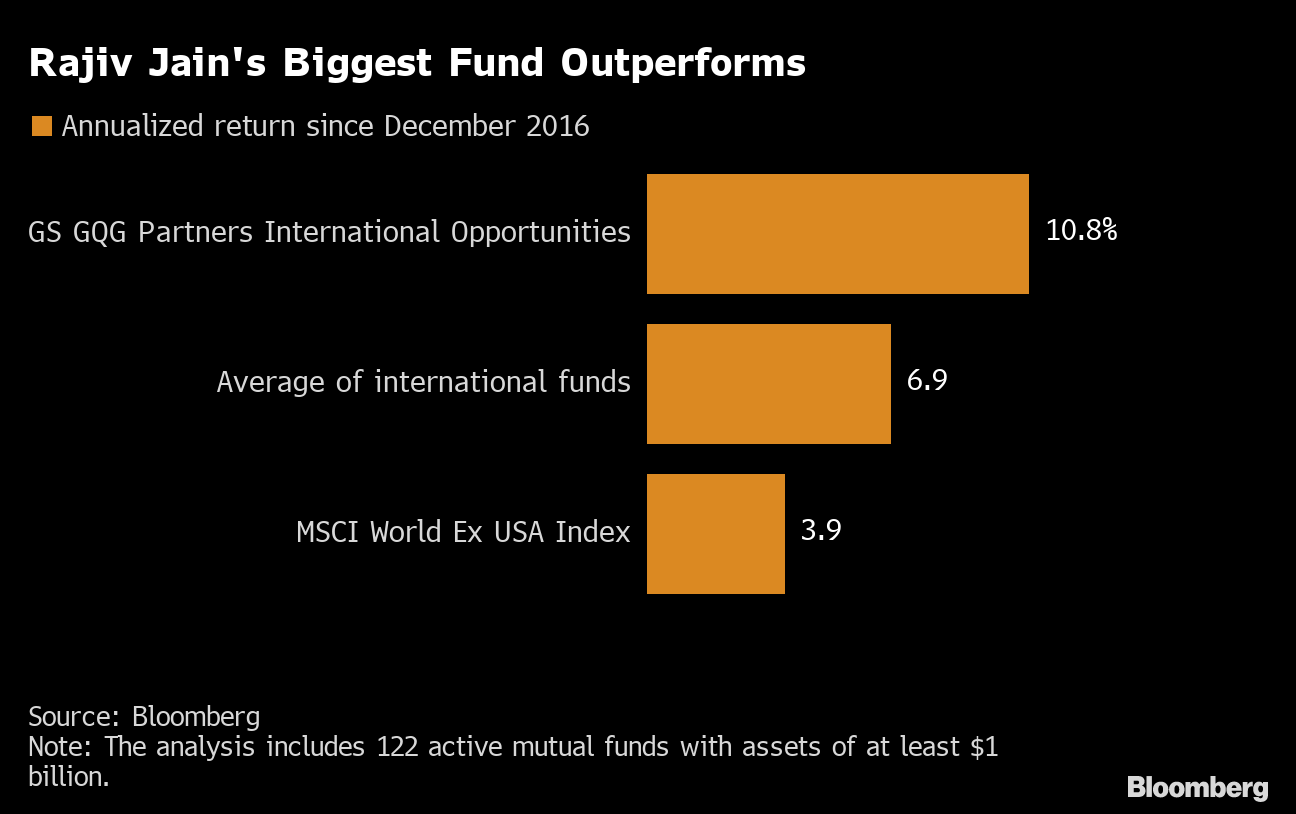 Pull the lens back further and the outperformance of GQG's biggest fund, the $26 billion Goldman Sachs GQG Partners International Opportunities Fund, is even starker. Since its inception in December 2016, the fund has gained 10.8% a year, more than double the benchmark's 3.9% annual return.