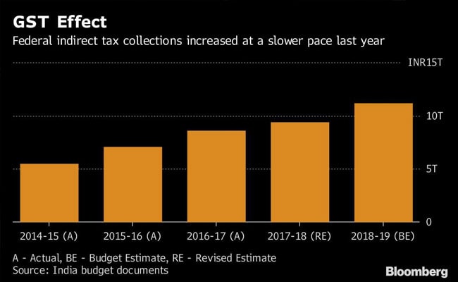 But there may be signs of improvement. Nomura Holdings Inc. analysts say the introduction of electronic bills for transporting goods between states has led to a rise in GST collections, giving them confidence that the budget targets will be met. Finance Minister Piyush Goyal said on Sunday tax collections are expected to pick up during the rest of the year and the government will likely raise Rs 1,300 crore from GST.