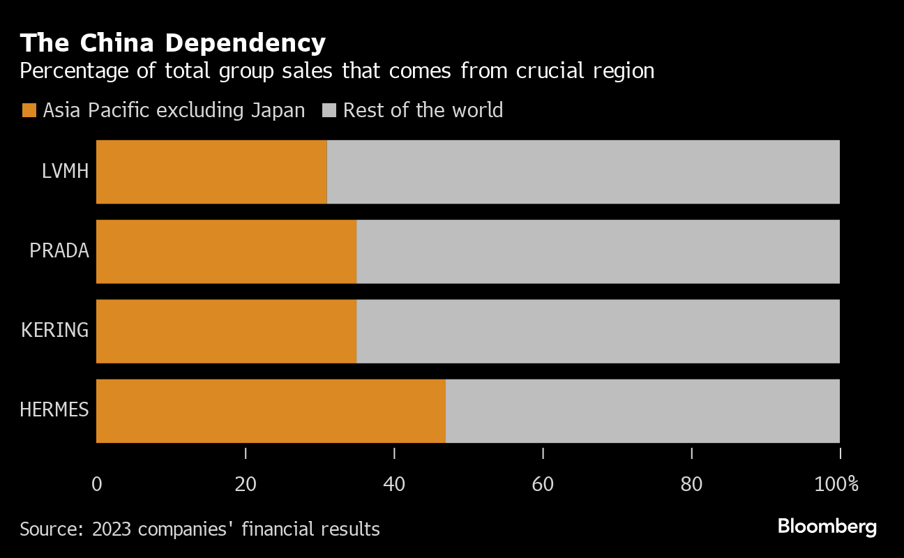 Some brands may be forced to find ways to reduce their reliance on China. Growth in luxury sales there this year is forecast to slow to the mid-single-digits, compared with 12% in 2023, according to a report from Bain & Co., a consulting firm. But that growth will be driven by high-net-worth individuals, or those with investable assets of more than 10 million yuan ($1.4 million).