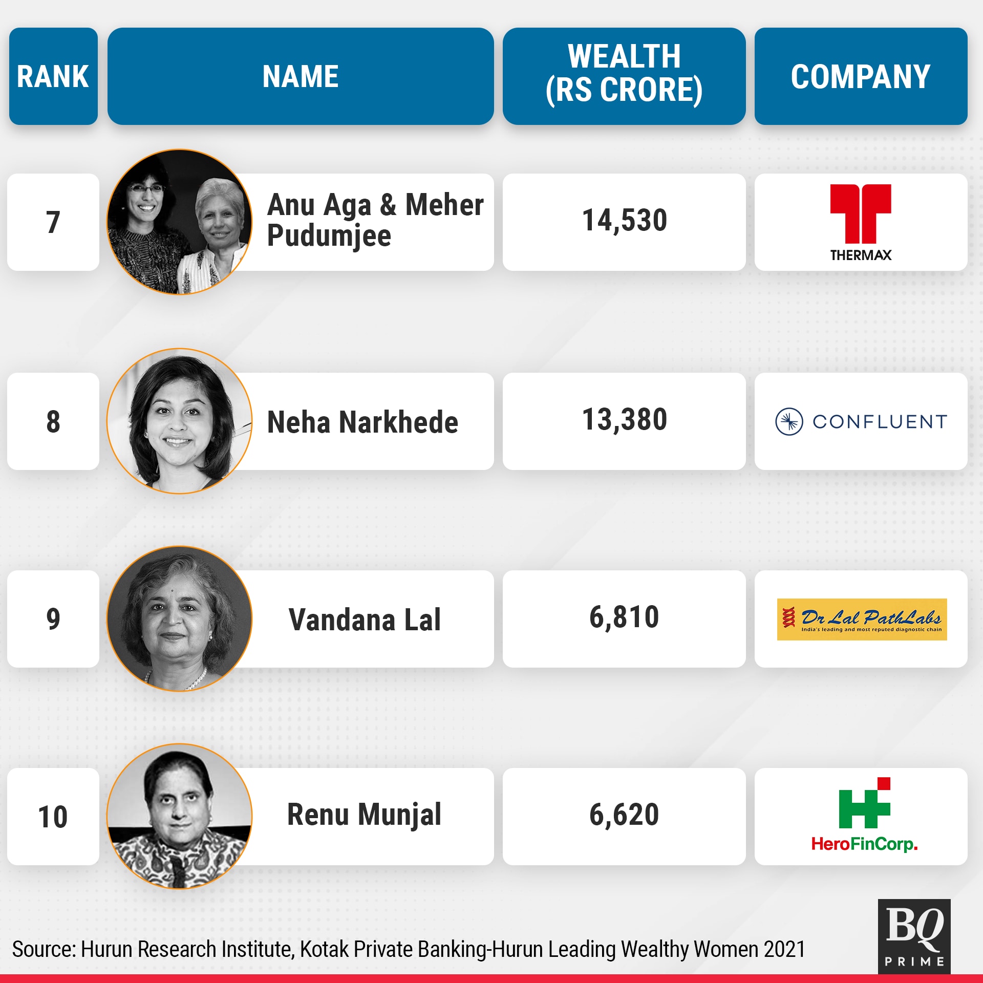 Two new names that made it to the list this year are Neha Narkhede and Vandana Lal. Narkhede is the co-founder of data streaming technology business Confluent and has a net worth of Rs 13,380 crore. Lal is the executive director of Dr. Lal PathLabs Ltd., with a wealth of Rs 6,810 crore.