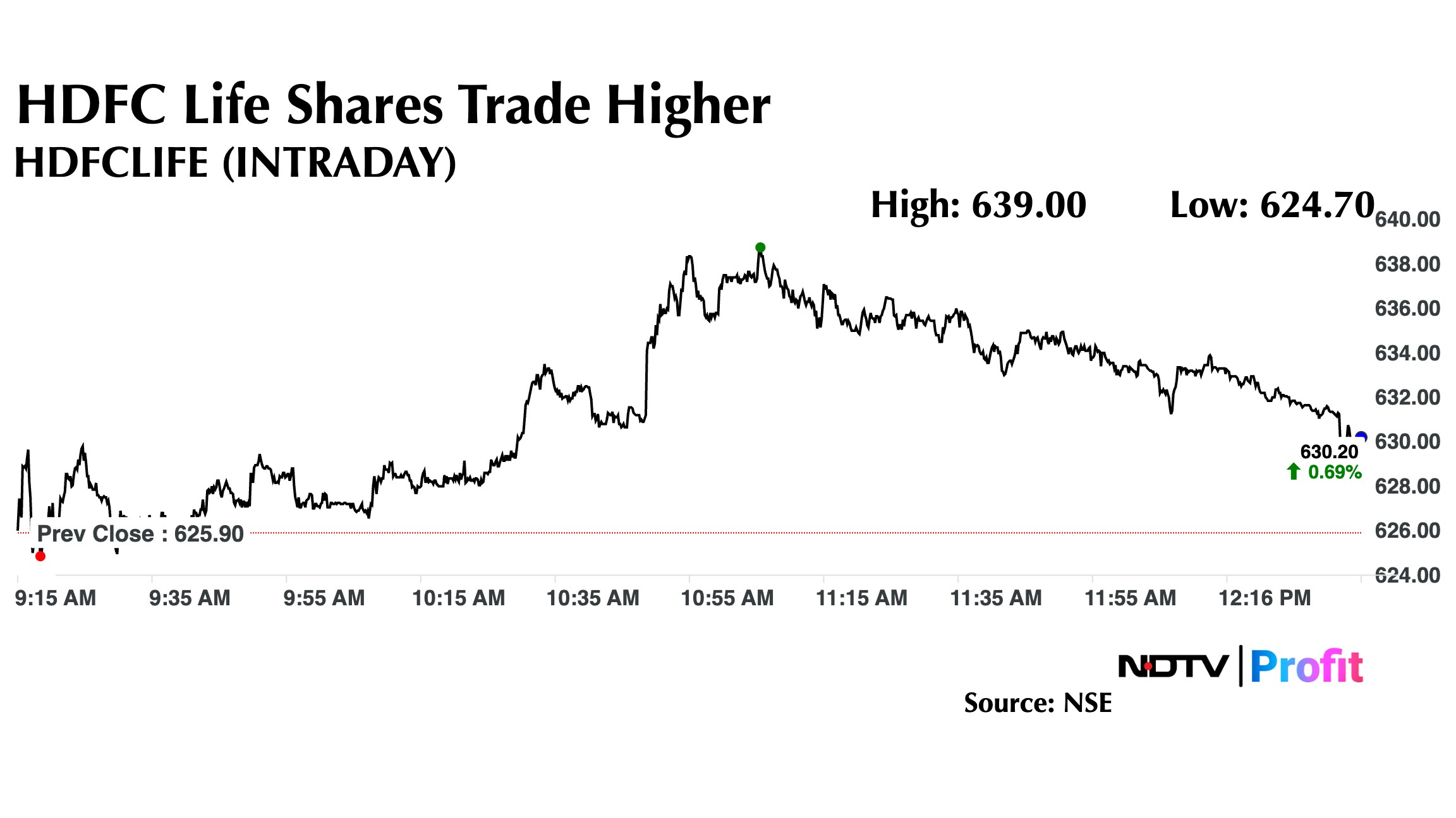 HDFC Life's share price rose as much as 2.09% intraday to Rs 639 apiece. The scrip was trading 0.93% higher at Rs 631 per share as of 12:28 p.m. The benchmark NSE Nifty 50 was flat.