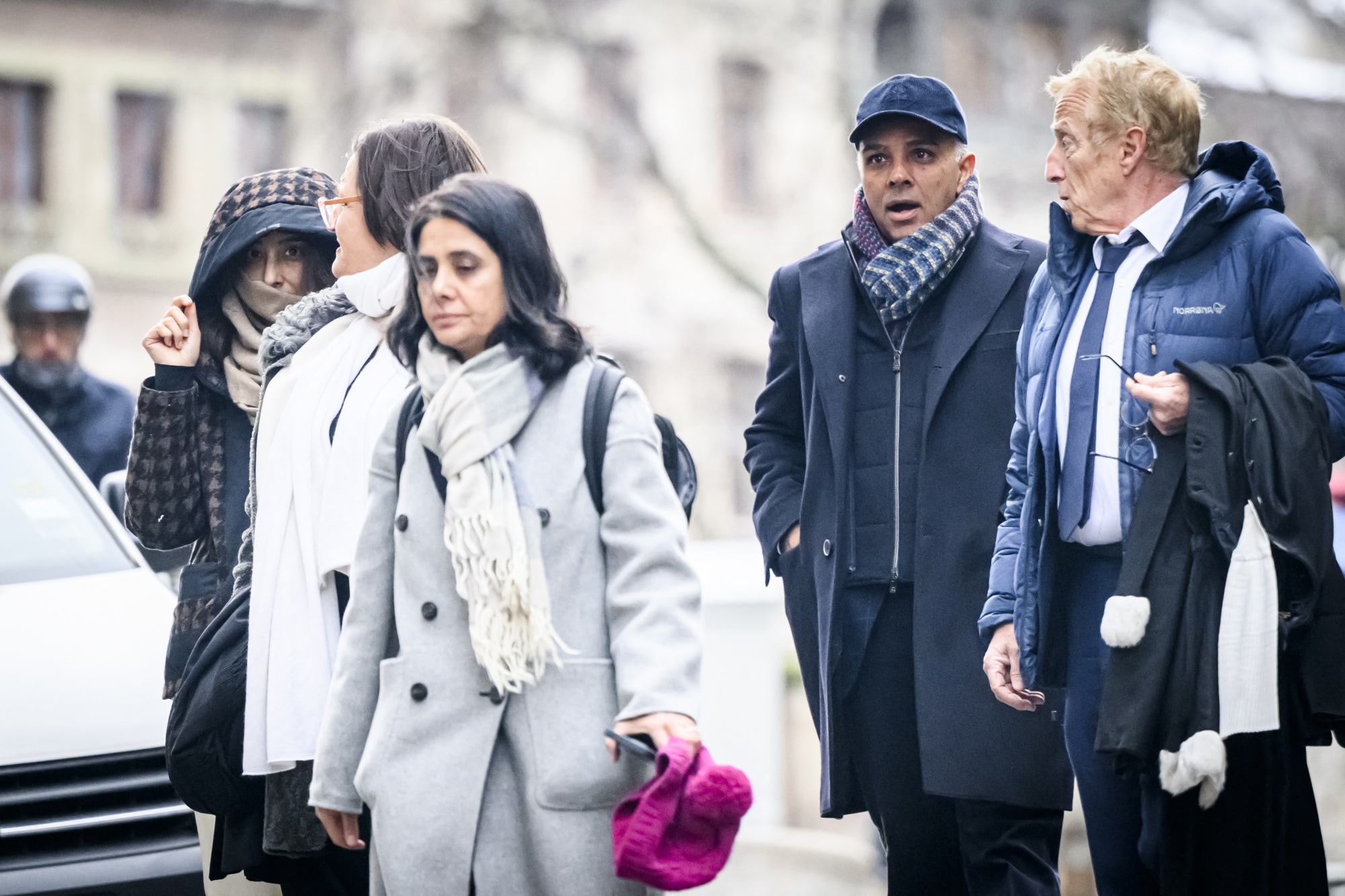 Namrata Hinduja, left, and Ajay Hinduja, second right, at the courthouse in Geneva on Jan. 15.