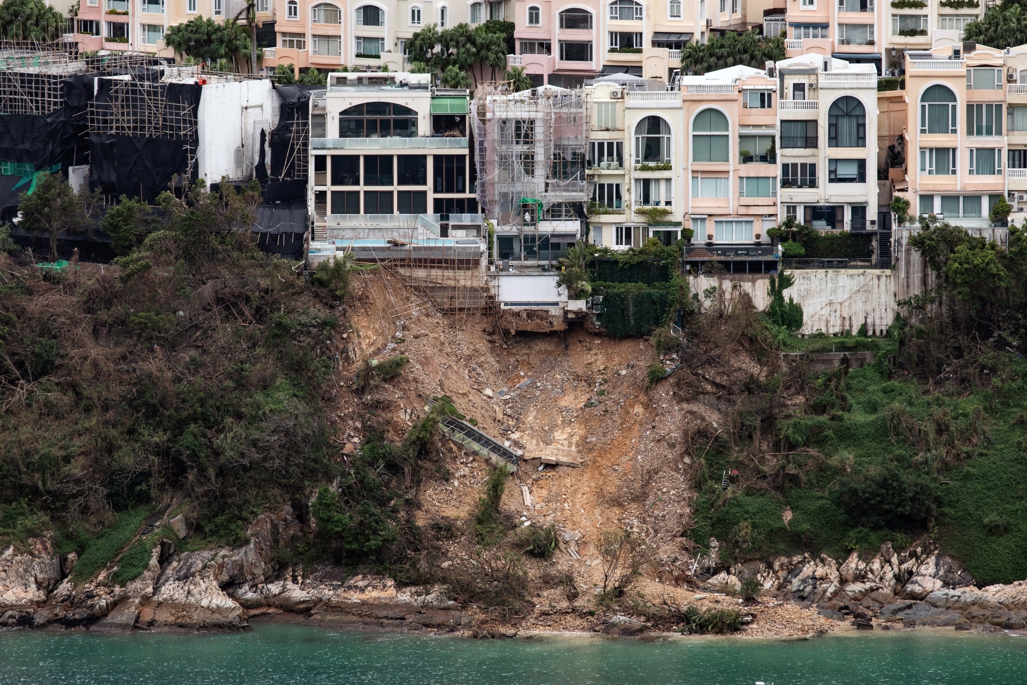 (Bloomberg Businessweek) -- In a September storm that unleashed Hong Kong's heaviest rainfall in more than a century, tons of dirt, rocks and debris tumbled into the sea below Redhill Peninsula, a cluster of $10 million-plus modernist town homes on the south side of the island. The landslide left a scar on the hillside, exposing unauthorized basements excavated beneath the foundations of several houses. Government inspectors dispatched to the exclusive enclave soon discovered 48 properties with illegal structures, and 22 of those encroach on city-owned land.