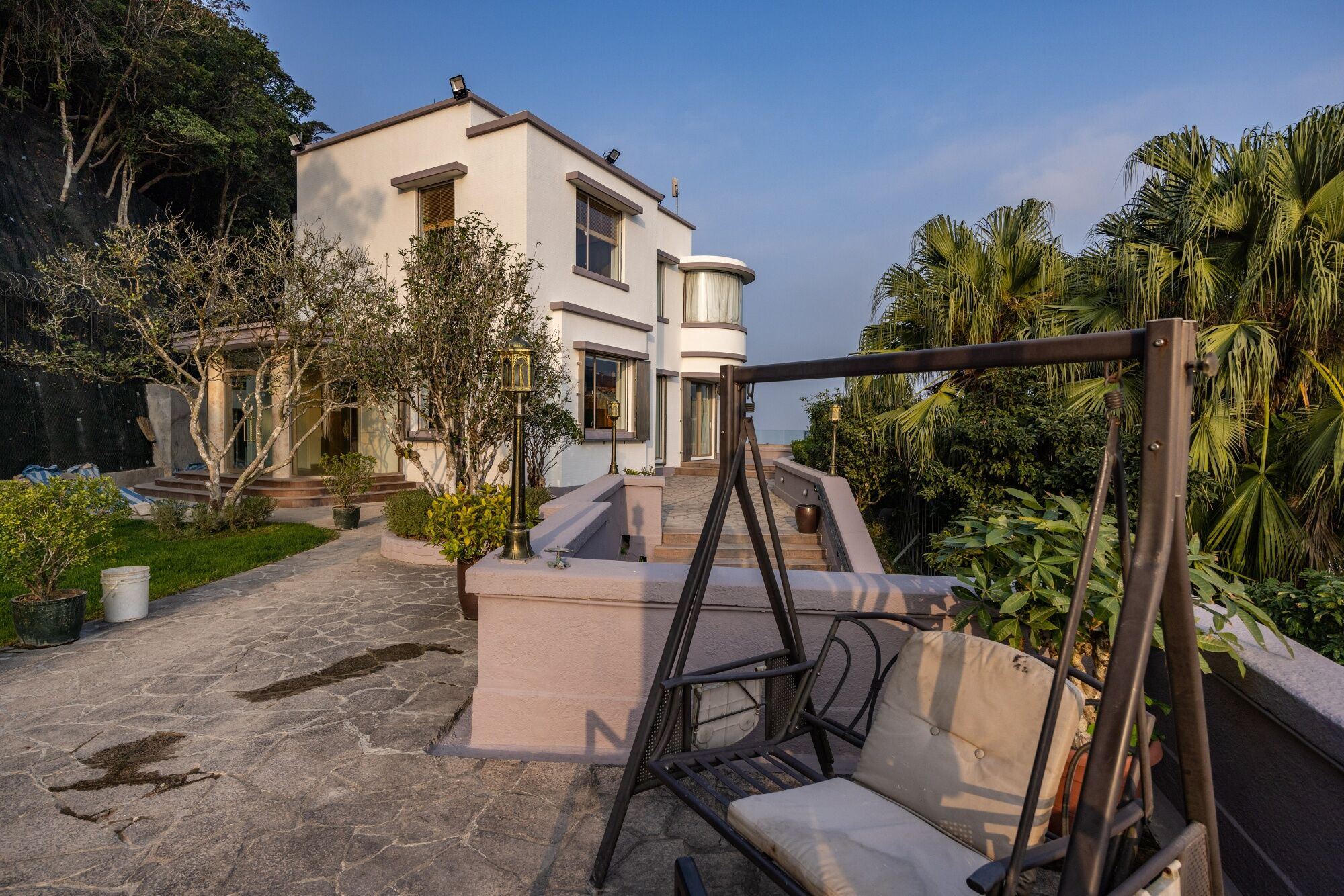 The secluded three-story, four-bedroom property, reached via a steep drive accessed by Mount Austin Road, has a sizeable garden and views of both Victoria Harbour and the jungle-clad southern side of Hong Kong island. It has a grade-3 heritage listing.