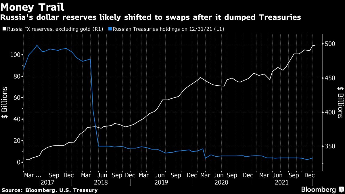 Russia still has about $300 billion of foreign currency held in offshore swaps -- enough to disrupt money markets if they are frozen by sanctions or moved suddenly to avoid them.