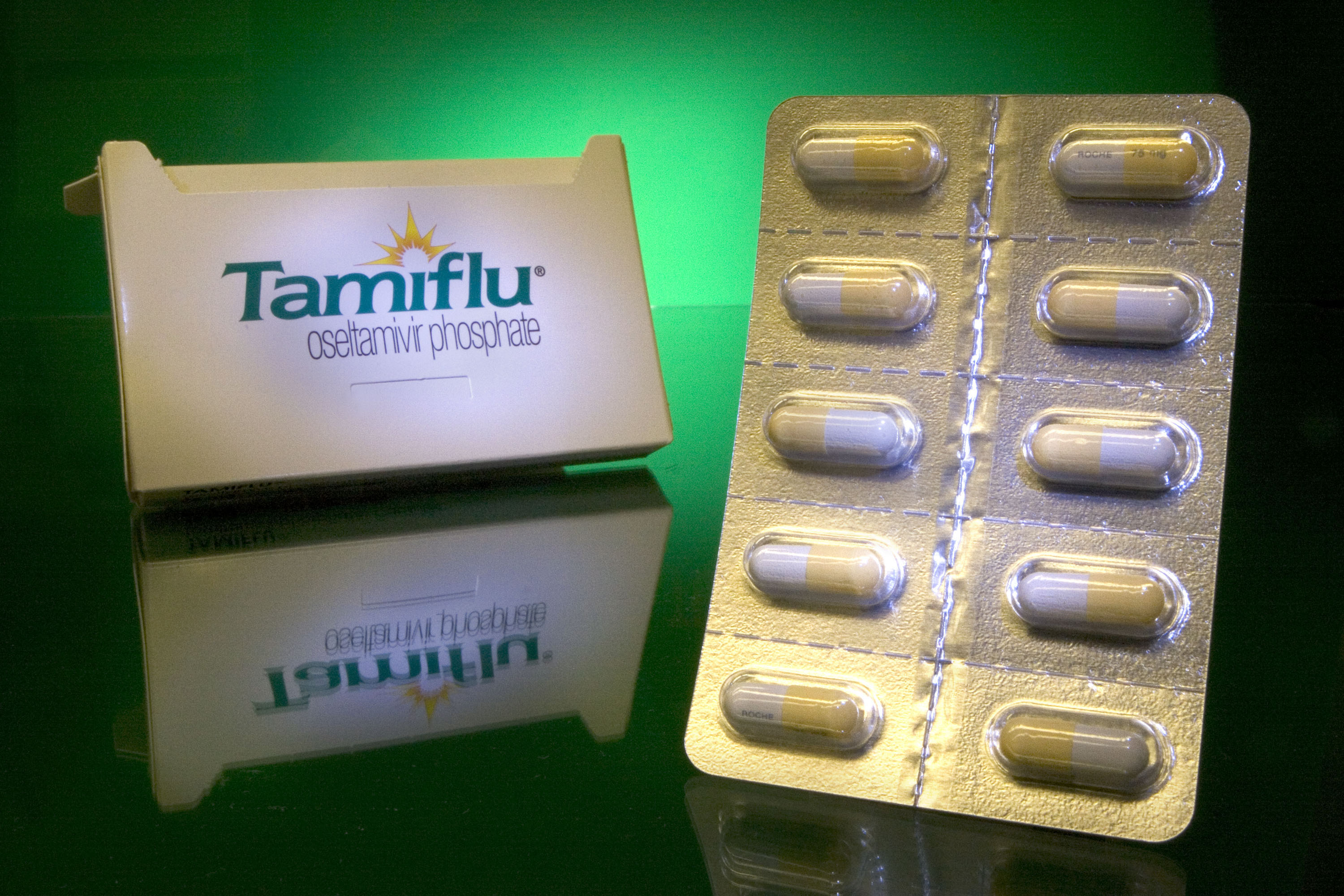 Influenza treatment Tamiflu is arranged on the shelf. (Photographer: JB Reed/Bloomberg News.)