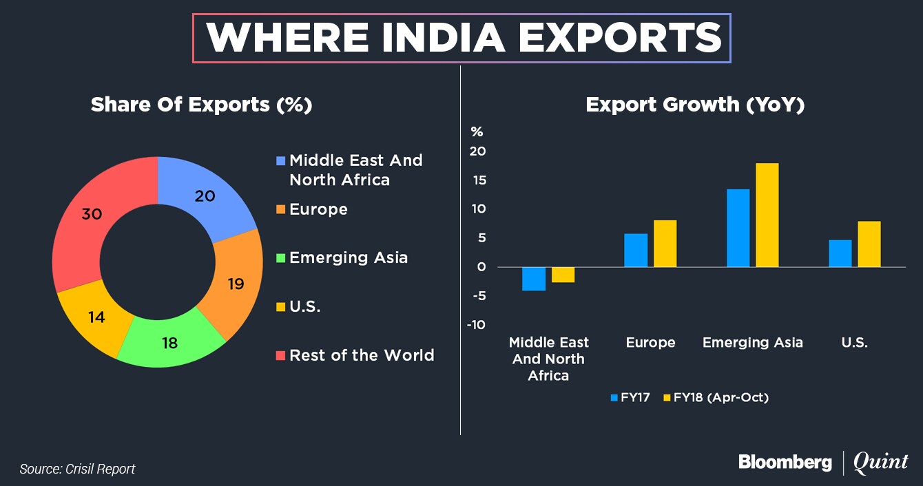 But the scenario may improve in 2018. Global growth momentum is likely to continue this year with “strong broad-based cyclical recovery” in the U.S. and the European region “supported by consumption, investment and trade growth”, according to CRISIL. Saudi Arabia and UAE too may grow faster as political turmoil in the region eases.
