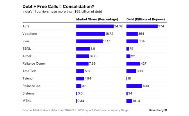 Reliance Jio's entry may be the final straw for carriers going it alone in the world's second-largest mobile-phone market.