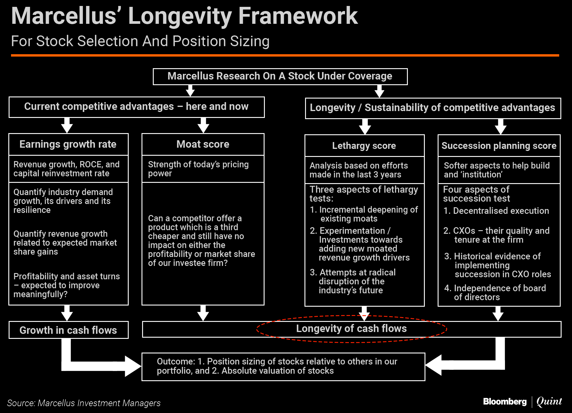 In summary, using an objective set of parameters, our longevity framework helps in assessing how long the company is likely to sustain the healthy growth in free cash flow and a company's score in the longevity framework forms an important basis in deciding not only whether a company makes it to/remains in the portfolio but also the inter-se position sizing amongst the portfolio companies.