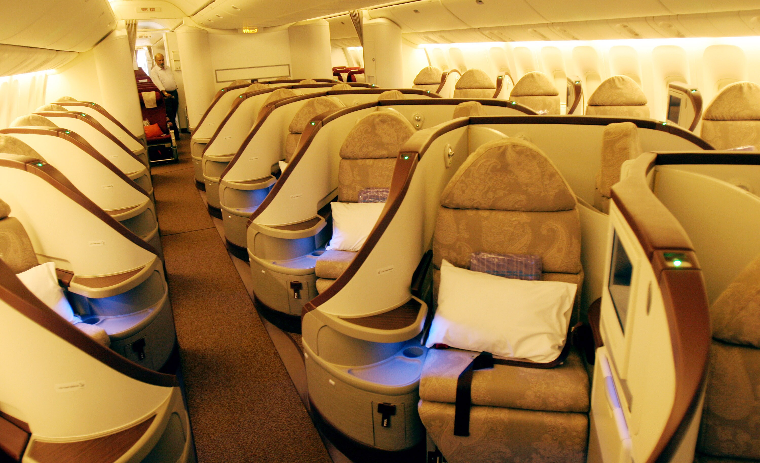 A guest looks at business class facility of Jet Airways Boeing 777-300 and Airbus 330-200 at Chatrapathi Shivaji International Airport. Photographer: Prashanth Vishwanathan/Bloomberg News