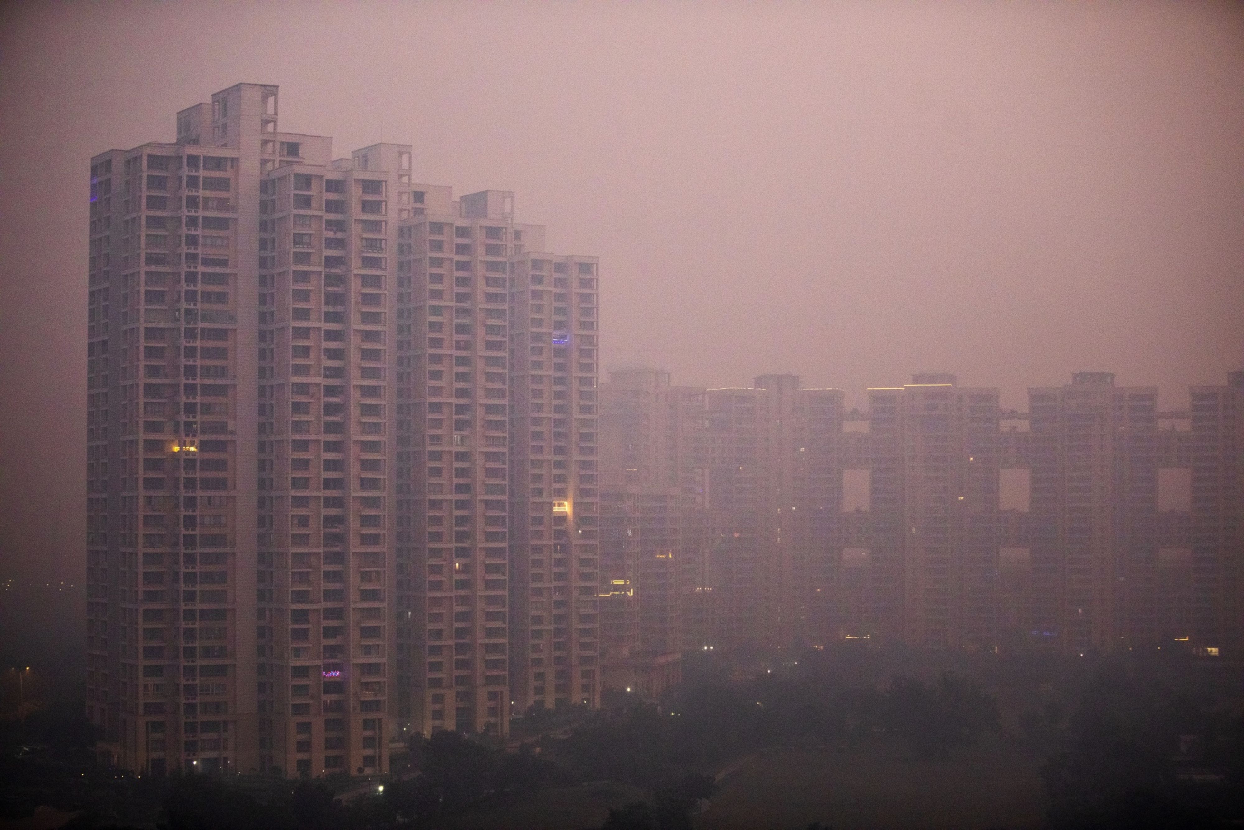 Buildings shrouded in smog in Noida, Uttar Pradesh on Nov. 9, 2021. (Photographer: Prashanth Vishwanathan /Bloomberg)