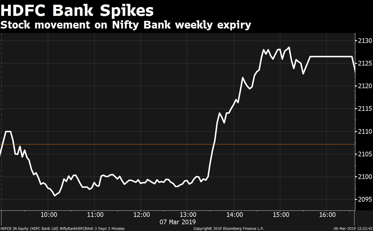 At the core of this strategy is HDFC Bank Ltd., which has a weight of more than a third on the Nifty Bank Index. A 1 percent (about Rs 20) move in the stock changes the banking gauge by 0.35 percent (nearly 100 points). This correlation is used to increase volatility and distort option premiums to make steep returns, according to market participants.