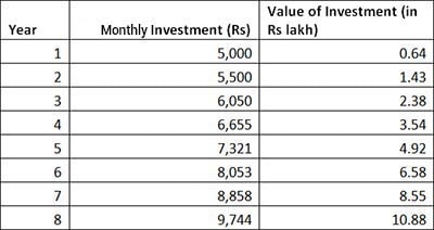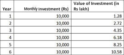If you are 24 and want to accumulate Rs 10 lakh in your account by the time you reach 30, you will be required to invest Rs 10,000 per month in an asset class which gives you Rs 12 per cent,  to achieve the goal.