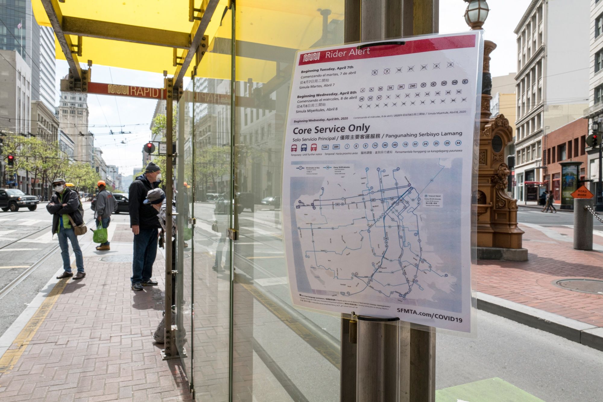 To prevent overcrowding, 80% of SFMTA's bus routes had been suspended, along with all light rail and cable car service. The somewhat counterintuitive idea was that the 17 remaining “core service routes” would run at far higher frequencies, so wait times would be reduced and passengers would be able to practice social distancing.