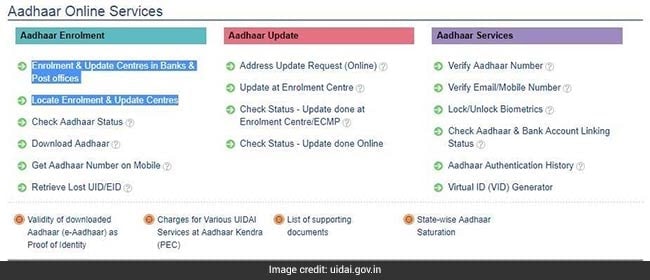 While the first link leads to the tool that helps a user locate the nearest Aadhaar centre in a bank or post office, the second one can be used to locate independent Aadhaar centres. The UIDAI currently offers permanent Aadhaar centres in the form of regional Aadhaar offices as well as designated banks and post offices.