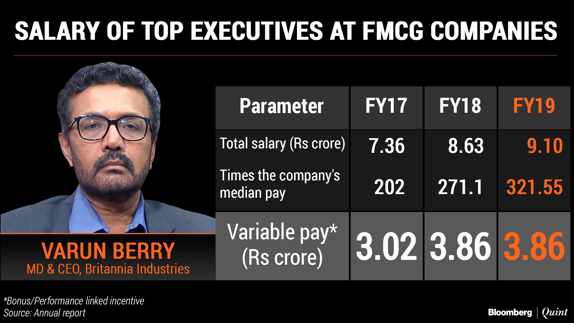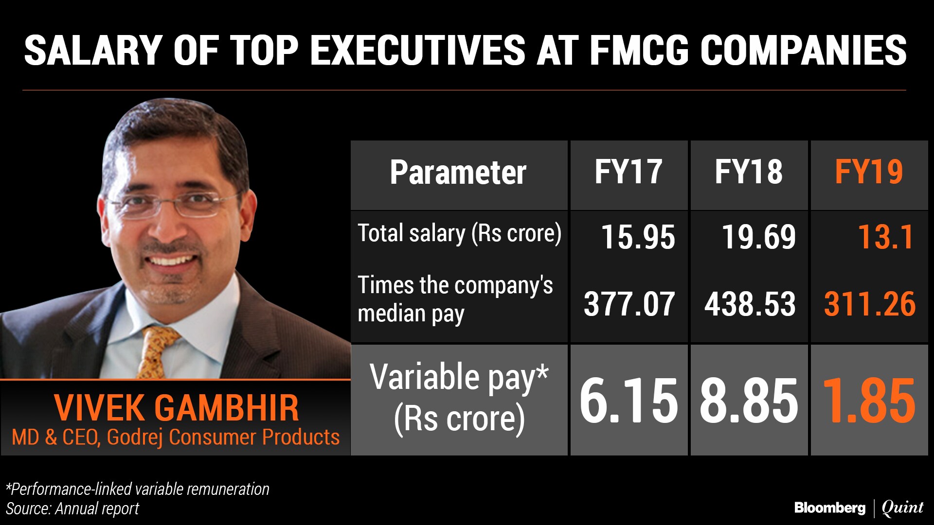 Here's a look at how the variable pay changed for CEOs from the FMCG sector: