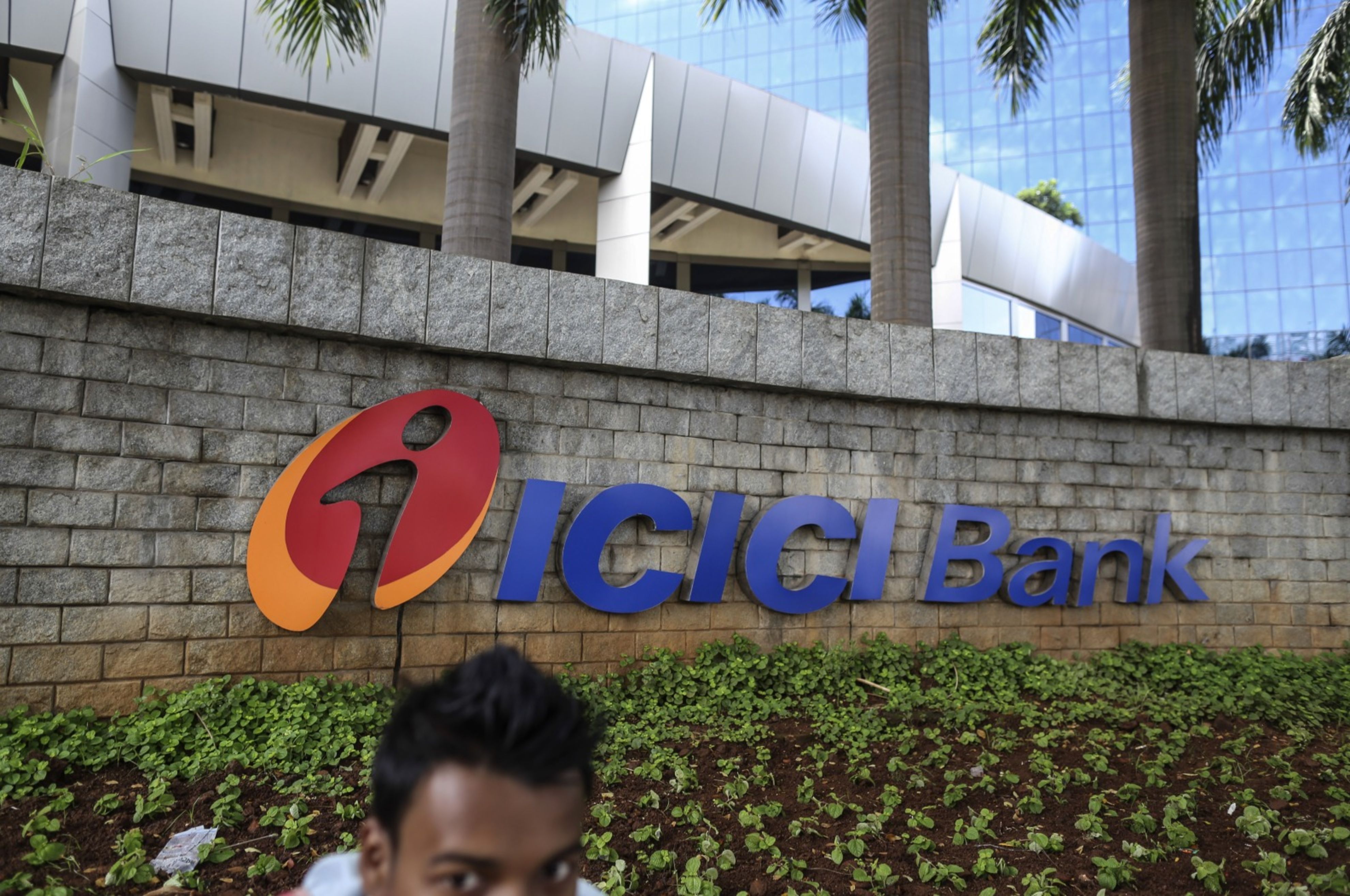 ICICI Bank Ltd. signage displayed on a wall. (Photographer: Dhiraj Singh/Bloomberg)