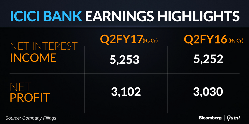ICICI Bank's asset quality indicators worsened during the quarter.