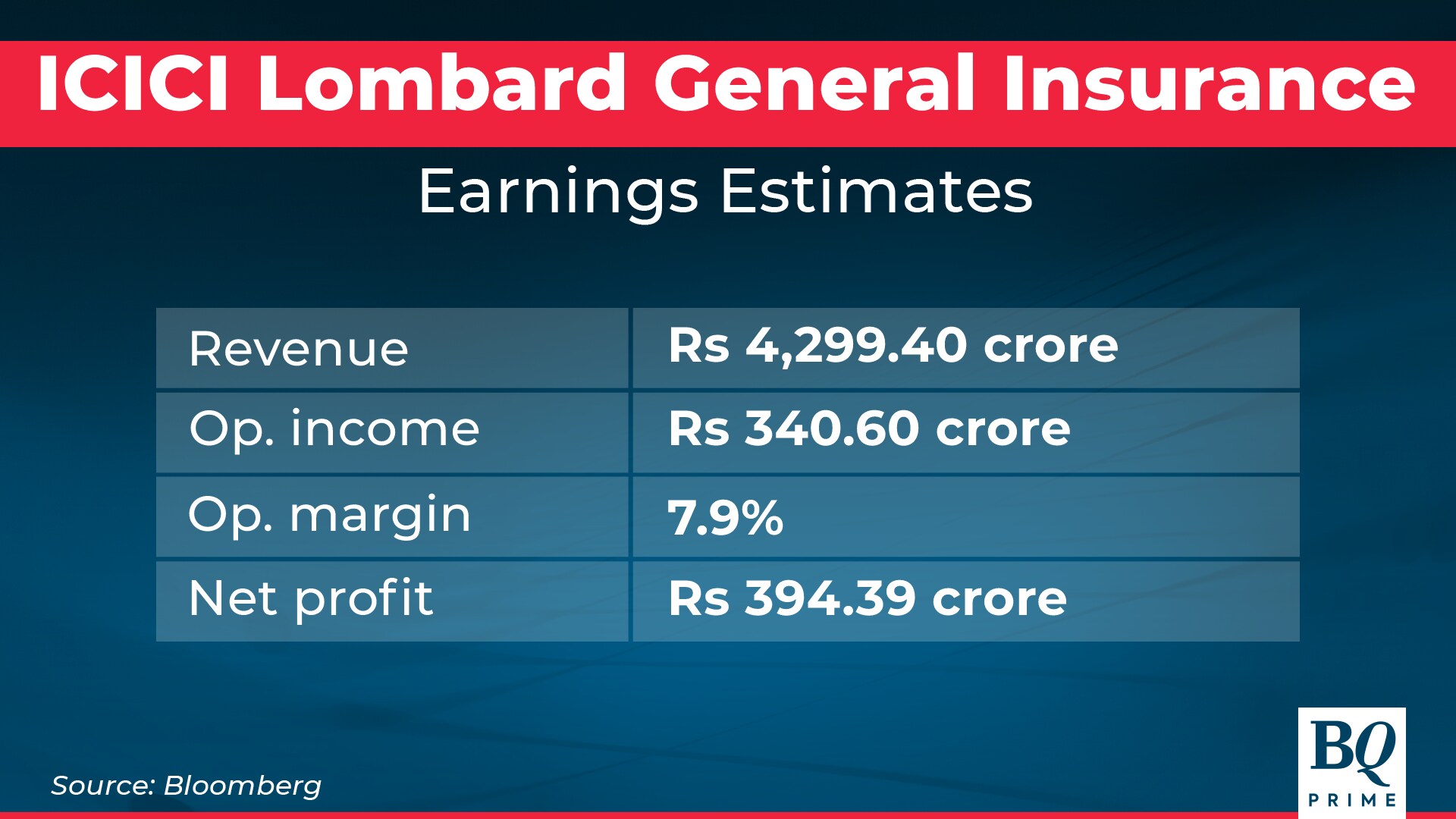 ICICI Lombard, the general insurance arm of private lender ICICI Bank Ltd., is expected to see a dip in revenue during the last quarter of fiscal 2023 at Rs 4,299.4 crore, according to analysts polled by Bloomberg. The insurer had posted a revenue of Rs 6,319.3 crore in the year-ago period.