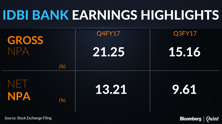 IDBI Bank, on Thursday, reported a net loss of Rs 3,200 crore for the fourth quarter of financial year 2016-17, as bad loans surged. The level of non performing assets (NPAs) reported by the bank may lead to the lender being subjected to the strictest form of corrective action by the regulator.