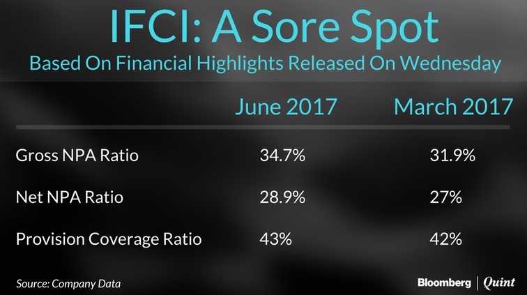 Government-owned IFCI Ltd. has reported a gross non-performing asset ratio of 35 percent as of June 30. That's higher than IDBI Bank's 24 percent, the worst among listed banks in India.