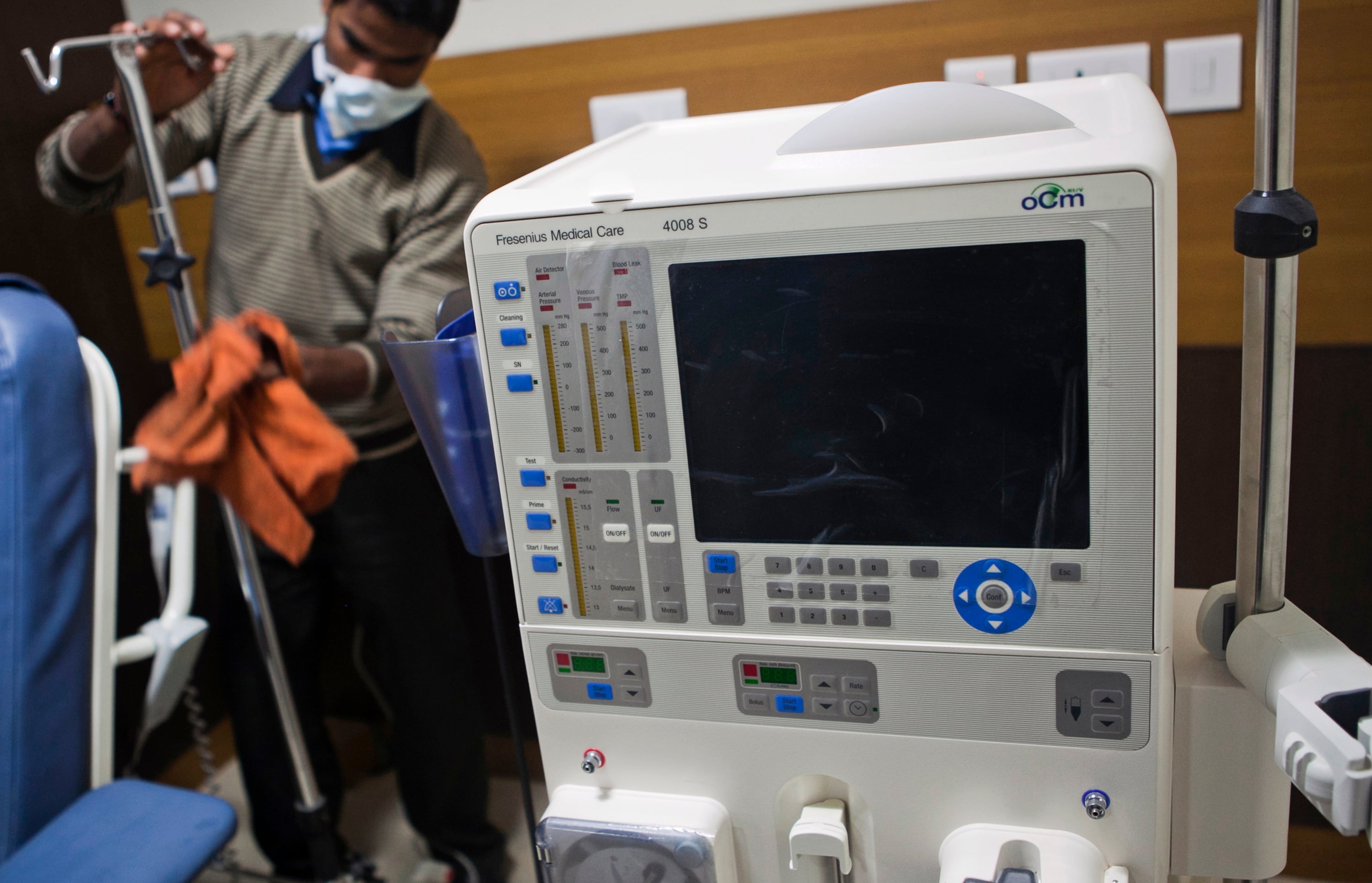 A Fresenius Medical Care AG dialysis machine stands inside a Fortis Healthcare India Renkare dialysis clinic in New Delhi (Photographer: Prashanth Vishwanathan/Bloomberg)
