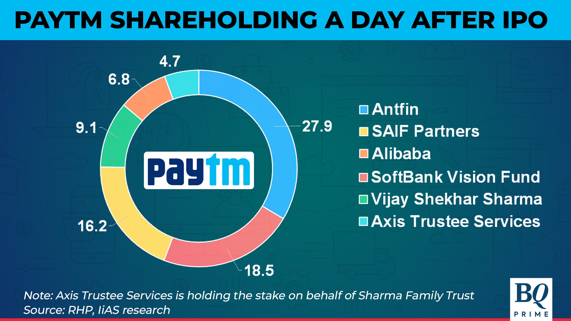 Paytm's red herring prospectus shows that before the company's initial public offering, Sharma reduced his direct equity shareholding in the company by 30.97 million shares. That brought down his stake in the company to 9.1% from 14.7% a year ago. At the same time, Axis Trustee Services Ltd., acting on behalf of the Sharma Family Trust, acquired 30.97 million shares.