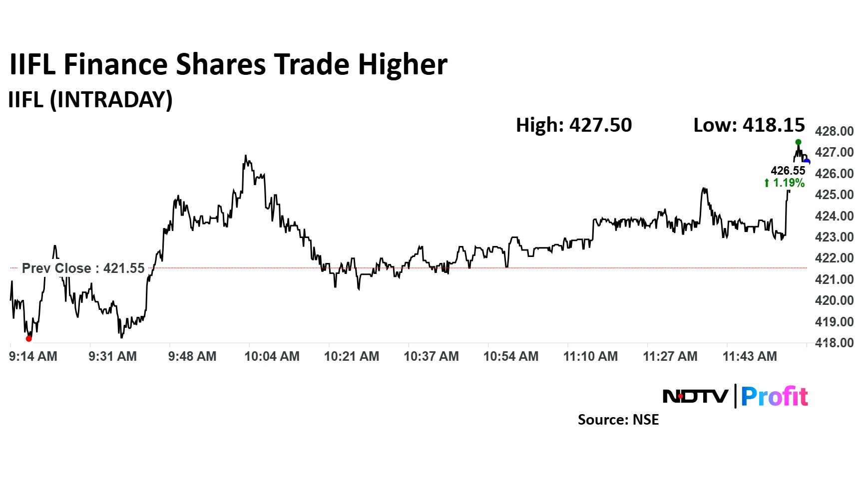 IIFL Finance share price was trading 1.2% higher at Rs 426.5 apiece as of 12:05 p.m., compared to 0.4% decline in the Nifty 50 index.