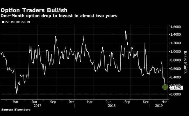 The rupee optimism is also reflected in the derivatives market, where one-month options conferring the right to sell the rupee now cost 19 basis points more than those to buy. That's down from 148 on Sept. 5, which was the highest since November 2016.